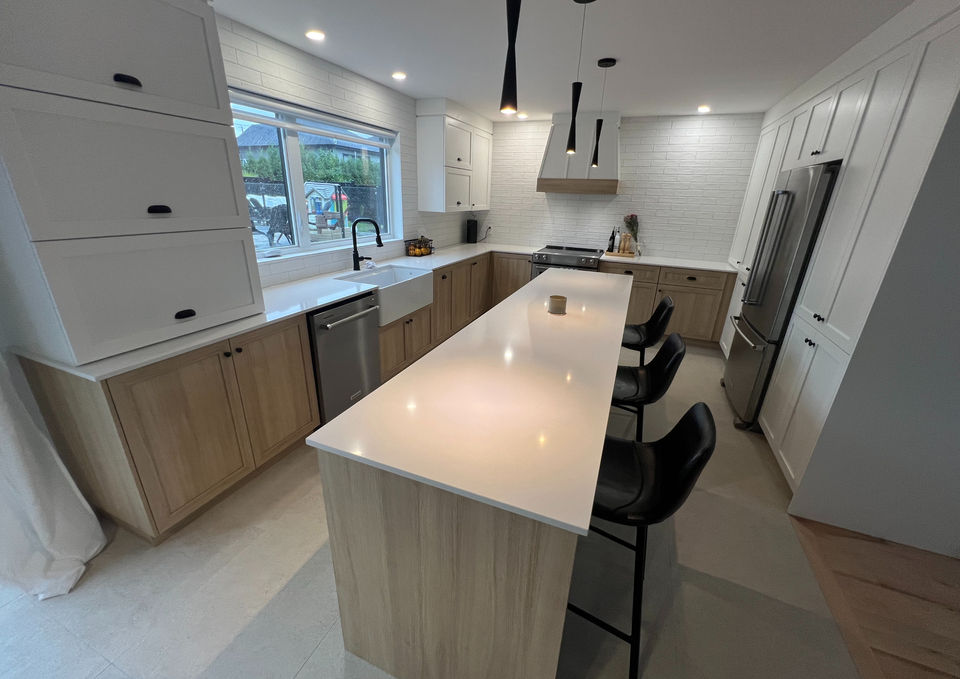 Nous avons fait faire notre plancher et notre dosseret de cuisine et nous sommes très satisfaits.